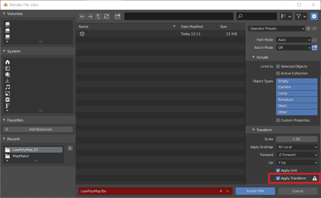 Works/Blender [Blender] FBX Export 후 Unity 에 Rotate 와 Scale 기본값이 다른 이슈 by Vader87 2020. 10. 16. 반응형 수정 방법은 3가지 Export 설정에서 Apply Transform 을 체크 ? ? www.youtube.com/watch?v=bpH5ZfonExo 반응형 공유하기 게시글 관리 Vader87 댓글