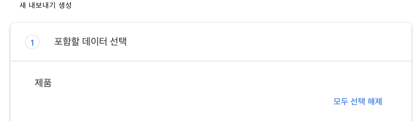 위 싸이트에 접속하면 우선 포함할 데이터를 선택 한다. 기본적으로 Google 의 모든 서비스가 선택되어 있는데 여기서는 Google 포토의 사진만 다운받길 원하므로 우선 모두 선택 해제를 선택한다.