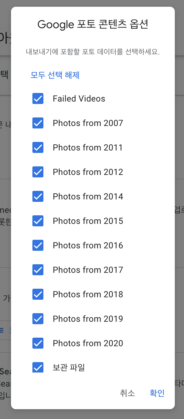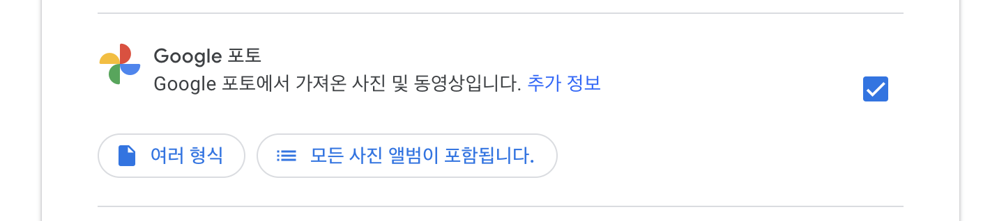그 다음 Google 포토만 선택해서 포함할 데이터에 추가해 준다.