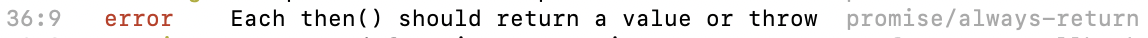 아래 에러는 async 혹은 promise 안의 then 구문에서 return 값이 없으면 나오는 에러 입니다. javascript 를 잘 몰라서 그런건지 에뮬레이터에서 문제가 없던 구문인데 배포에만 에러를 뱉어 당황했었던 에러입니다.