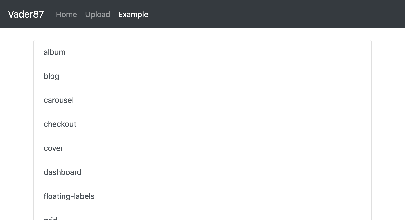 Header 영역을 별도의 파일로 관리하고 각 페이지 코드에서 Header 영역을 불러와 그려줍니다. 그리고 불러온 페이지에 맞게 Header 영역을 설정해 줍니다. 위의 예로 Example 페이지에서 Header 를 불러왔다면 Example 버튼이 선택되 있어야 합니다.