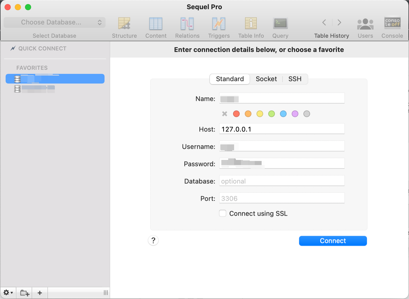 Visual Tool 을 사용해 줍시다. Mac 에서 DB 관리용 무료 툴로 Sequel Pro 라는 것이 있습니다.