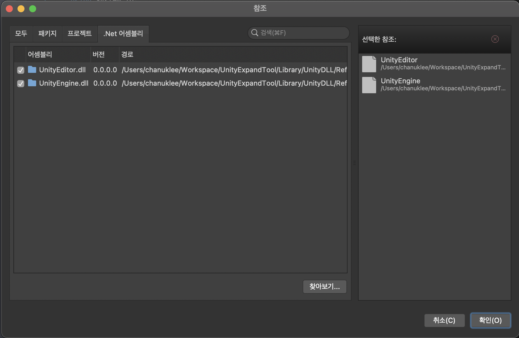 여기서는 Monobehaviour, Editor 등이 필요해 Unity 에서 필요한 dll 파일들을 가져와 참조 시킨다.