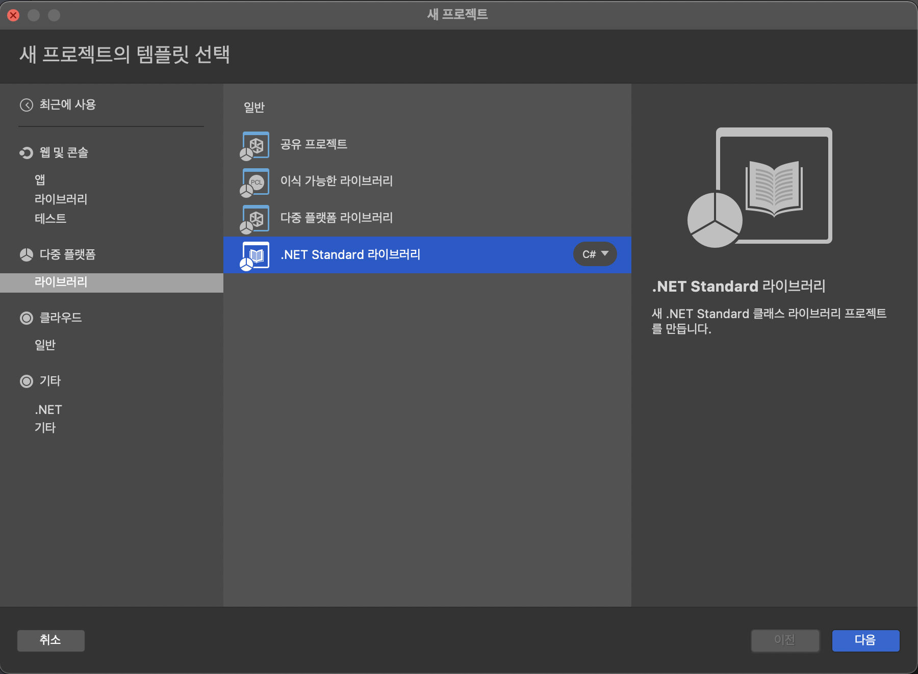 새 솔루션 > .NET Standard 라이브러리