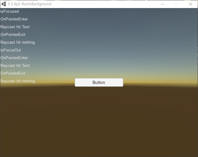 2018.4.2f1 버전으로 개발 중 Standalone 버전 개발 중에 클라이언트에 포커스가 가 있지 않으면 버튼의 Hover 이벤트는 작동하지 않는데 마우스 포인터 이벤트는 작동하는 이슈가 발생했습니다. 여기서 더 이슈가 되는 것은 5.3.8p2 버전으로 개발한 다른 클라이언트와 다르게 작동한다는 것이었습니다. 해당 부분은 비슷한 스크립트를 사용하였기에 버전 이슈겠지만 좀 더 정확한 확인을 위해 분석을 해보고 기록을 남깁니다.