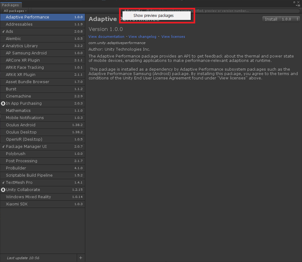 사용 가능한 Unity 버전은 2018.3 이상 입니다.