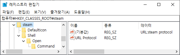 제가 사용하려는 값은 ClassesRoot 에 저장하는 것이 좋아보입니다. steam 도 해당 위치를 사용하고 있네요.