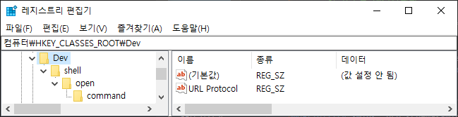 dev.SetValue("URL Protocol", "");