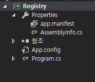 그러면 솔루션 탐색기의 Properties 항목에 app.manifest 항목이 추가 됩니다.