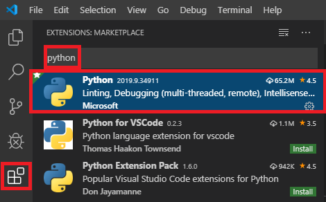 우선 Viausl Studio Code 좌측에서 Extensions 을 선택해 주고 Python 을 검색해 설치해 줍니다.