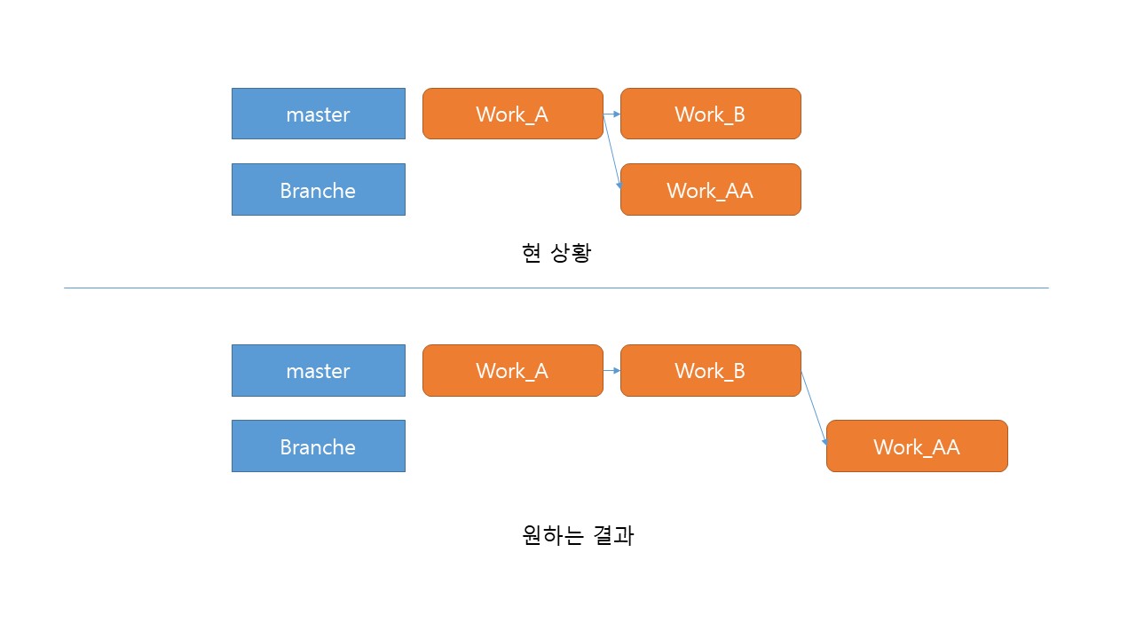 간단한 예로 Work_A 까지 작업된 master 에서 Branche 를 생성해서 Work_AA 라는 작업까지 마쳤는데 master 에 Work_B 라는 내용이 추가가 되었고 Branche 에서 이 내용을 반영해서 작업을 이어 나가야 하는 경우를 해결하는 방법이라고 보면 됩니다.