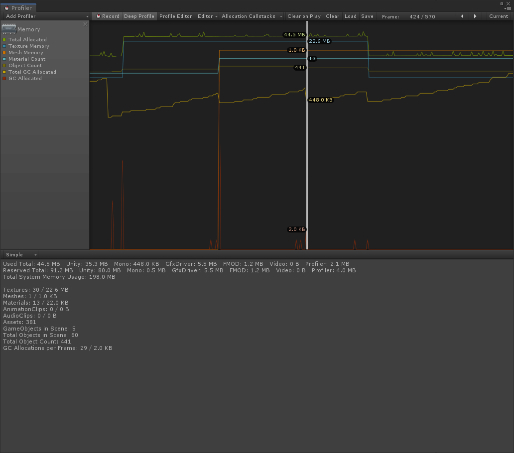 | Total Allocated | 40.1MB | 44.2MB | 44.2MB | 44.5MB | 40.2MB |