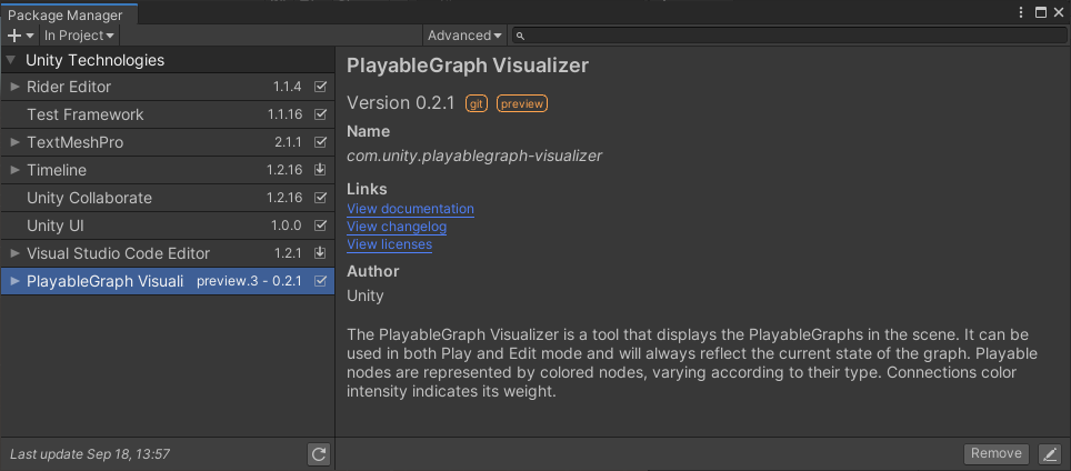 Unity Editor > Window > Analysis > PlayableGraph Visualizer
